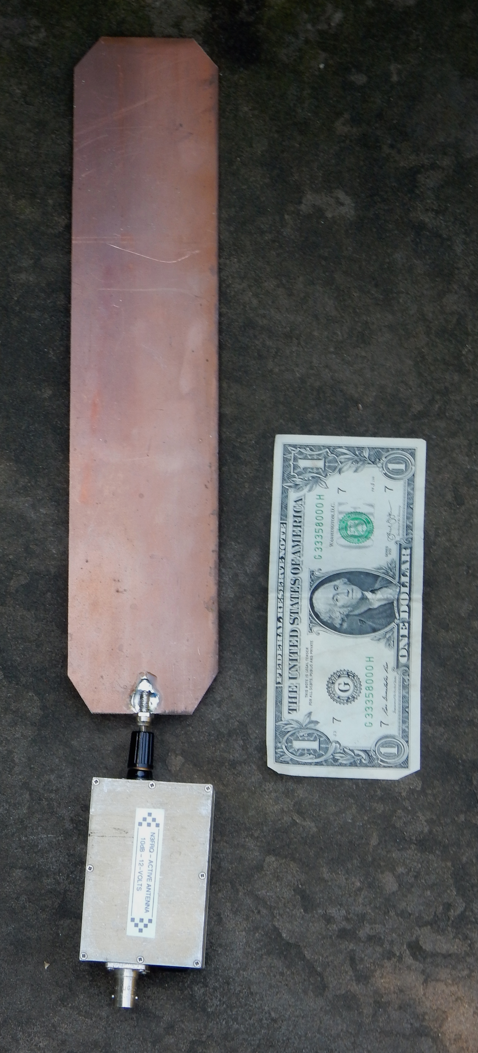 This is one of my homebrew active antennas wired in the high-gain configuration. You may want to review my Practical Antennas presentation from last year. Scroll down to "Probe Antennas" on page 24.